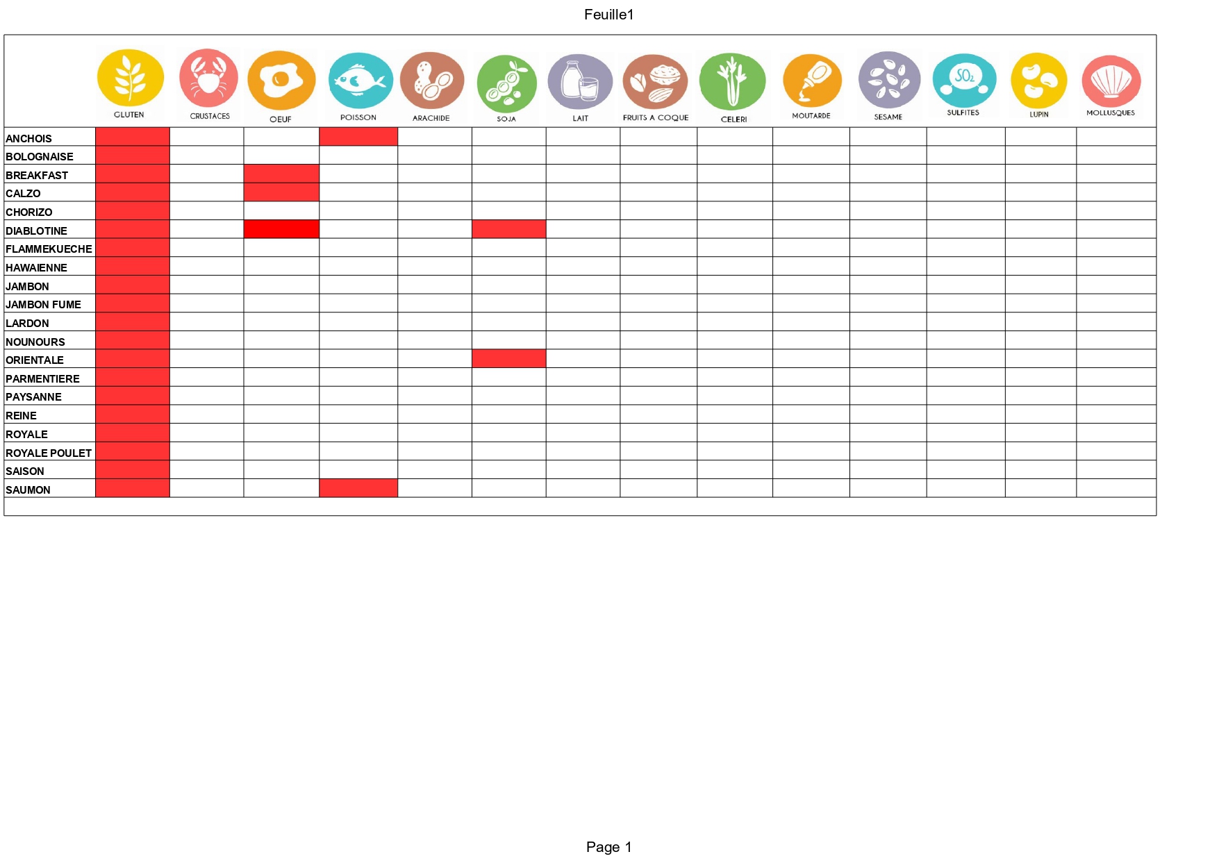Champignon, poivron, pomme de terre, mozzarella sans lactose, oignon, jambon, asperge, miel, poulet, lardon, chorizo, viande hachée, merguez, ananas, anchois, jambon fumé, bacon, tomate fraîche, olive noire, tomate cerise, épinard, noix, chicon, pomme. (sauf Oeuf (au plat): 1€)